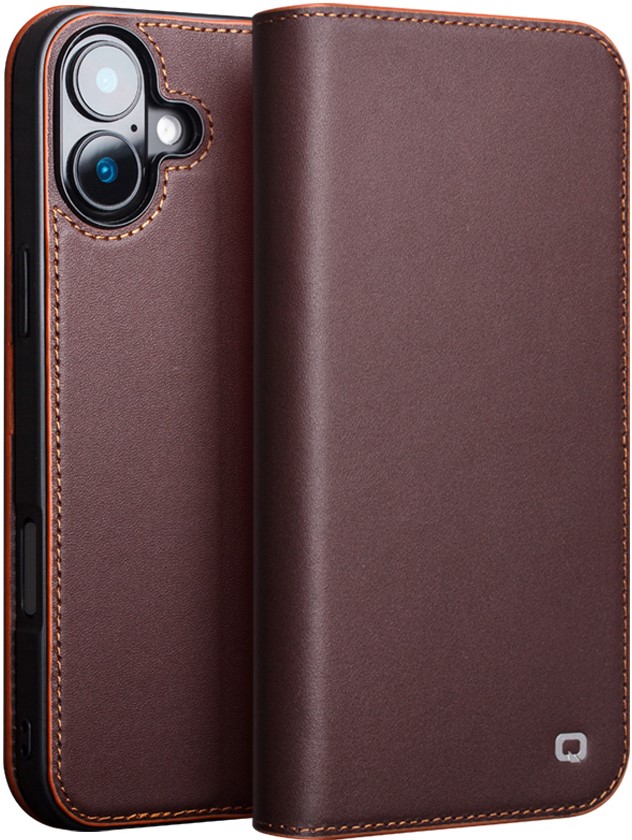 iPhone 16 Case Hülle - Qialino Flip Matt Wallet Echtleder - Braun