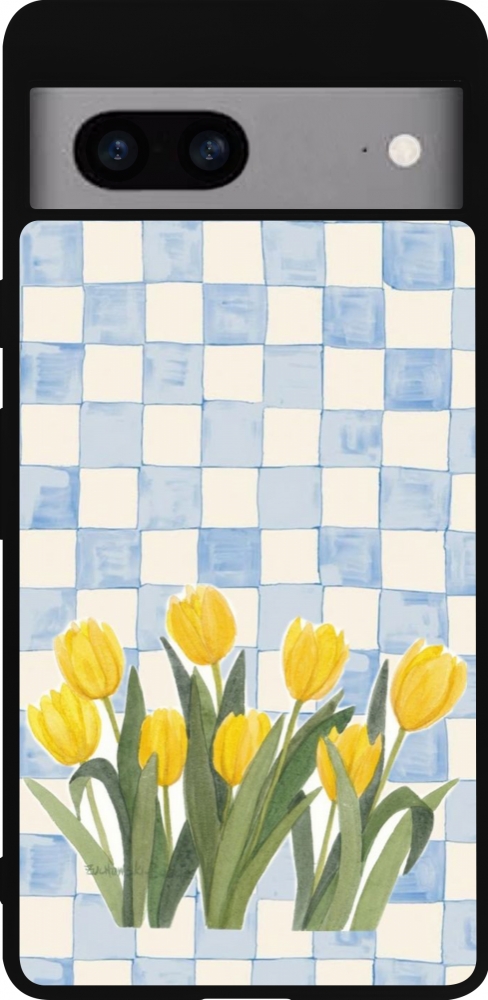 Google Pixel 7a Case Hülle - Silikon schwarz Blue vichy tulips Spring 2026