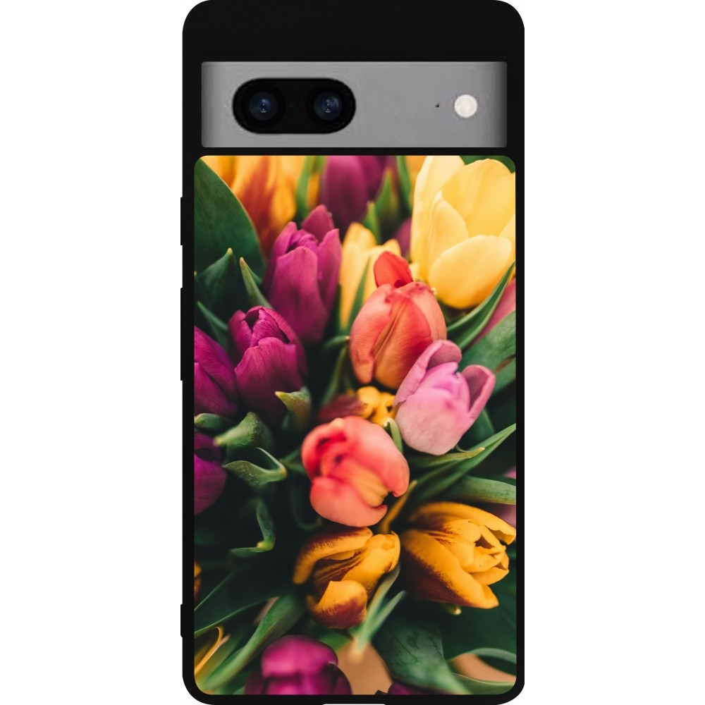 Google Pixel 7a Case Hülle - Silikon schwarz Bouquet of tulips Spring 2026