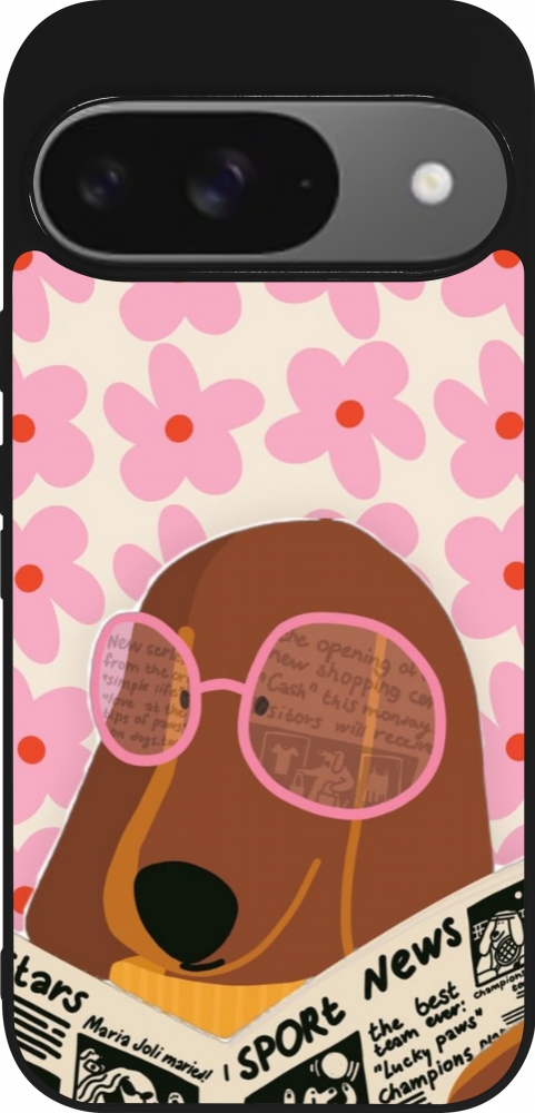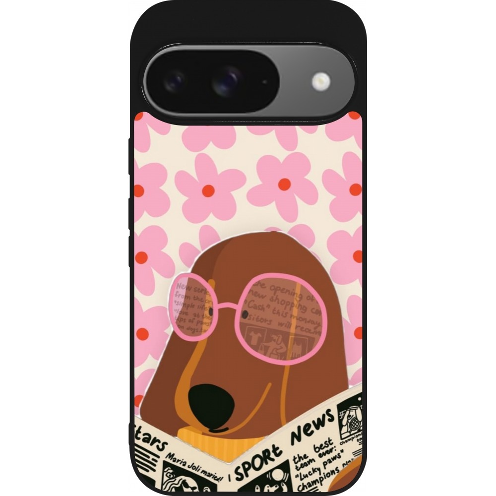 Google Pixel 9 / Pixel 9 Pro Case Hülle - Silikon schwarz Dog with newspaper Spring 2026