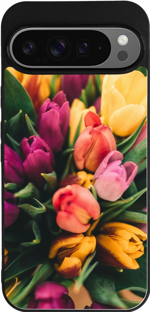 Google Pixel 9 Pro XL Case Hülle - Silikon schwarz Bouquet of tulips Spring 2026