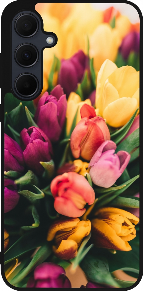 Samsung Galaxy A55 5G Case Hülle - Silikon schwarz Bouquet of tulips Spring 2026