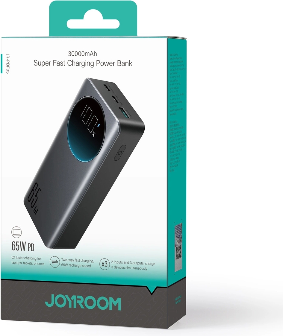 Die Joyroom 30000mAh 65W Powerbank ist die ideale Lösung für alle, die viel unterwegs sind und auf eine zuverlässige Energiequelle angewiesen sind. Mit einer beeindruckenden Kapazität von 30000mAh bietet sie genug Energie, um Ihre Geräte über mehrere Tage hinweg zu betreiben. Dank der schnellen Ladefunktion mit bis zu 65W können Laptops, Tablets und Smartphones in Rekordzeit aufgeladen werden. So müssen Sie nie wieder lange warten, um Ihre Geräte einsatzbereit zu haben.