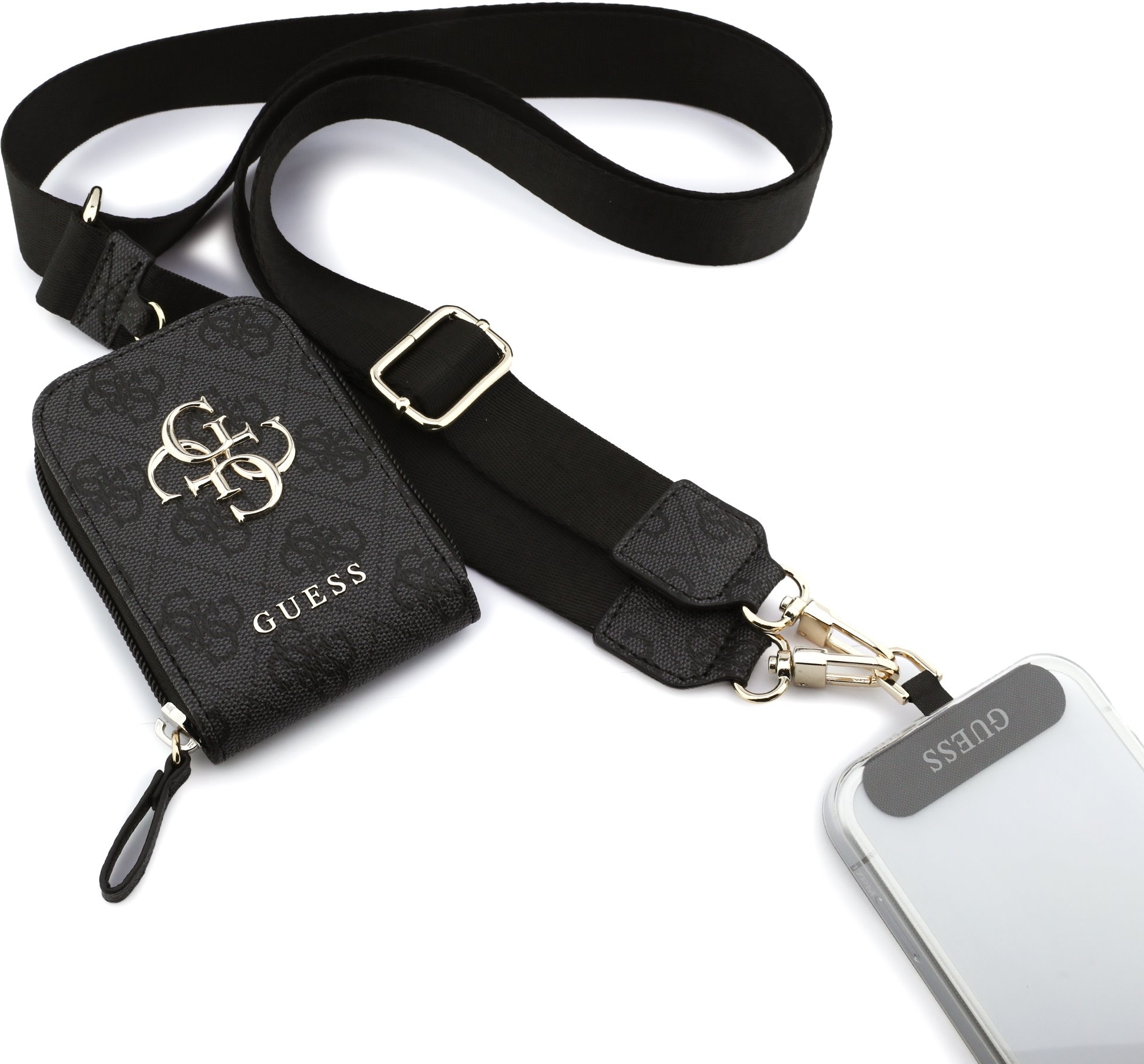 Découvrez le set élégant et pratique comprenant un popruh et une peněženka de la marque Guess, parfait pour toutes les occasions. Fabriqué en PU cuir de haute qualité, ce duo allie style et fonctionnalité au quotidien. Le design est sublimé par un imprimé 4G emblématique et un logo métallique distinctif, tandis que les détails dorés ajoutent une touche luxueuse à l'ensemble.