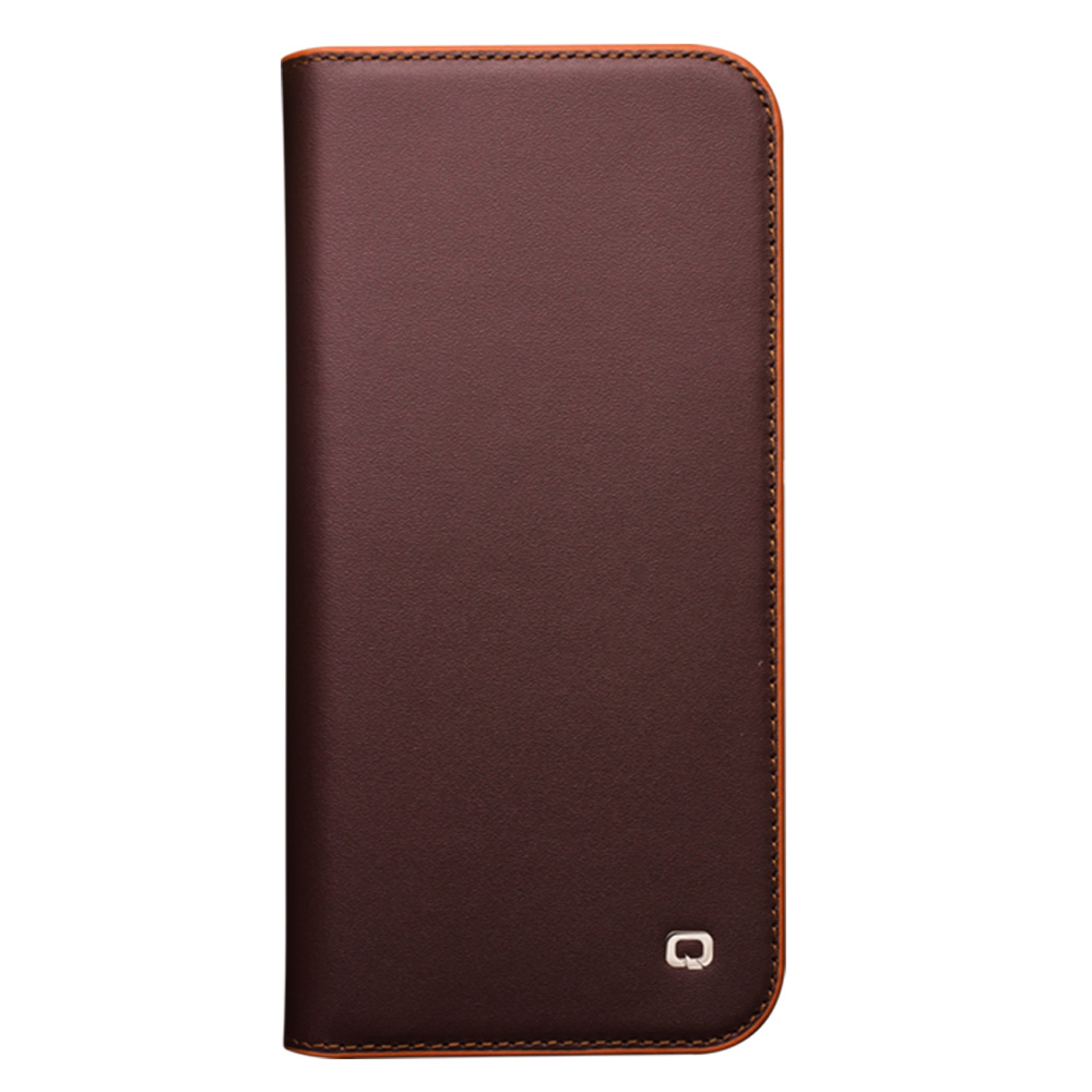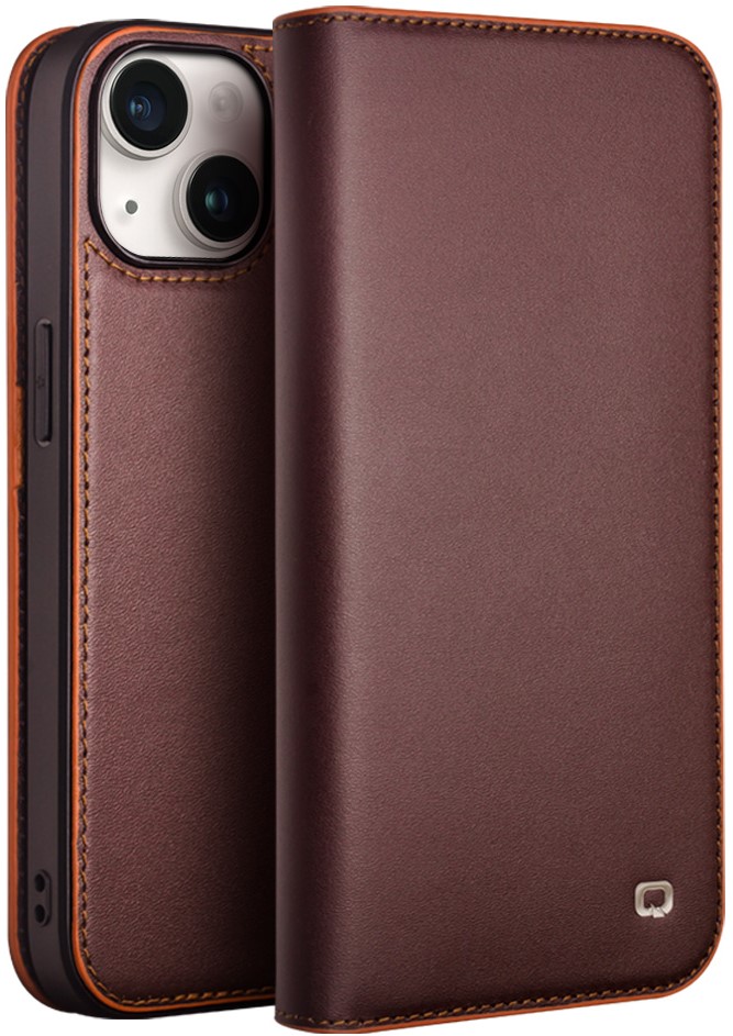Fourre iPhone 15 - Flip Qialino cuir véritable - Brun foncé mat