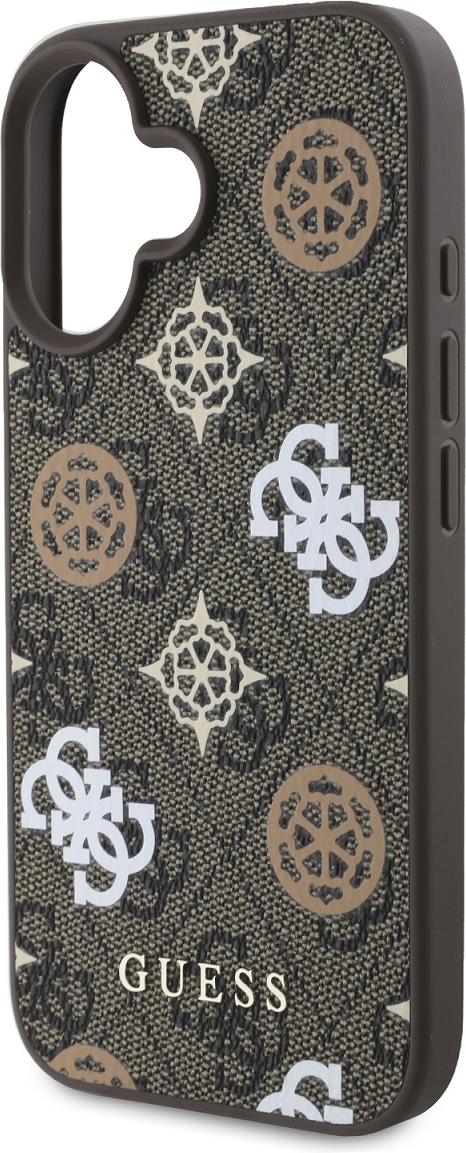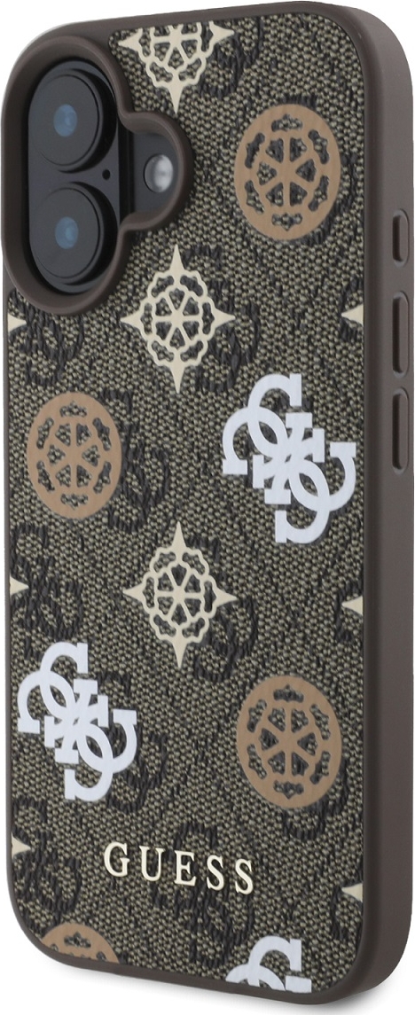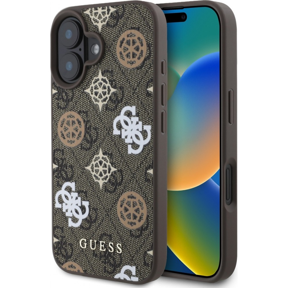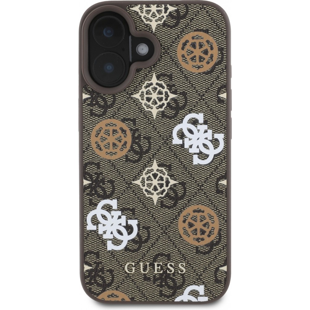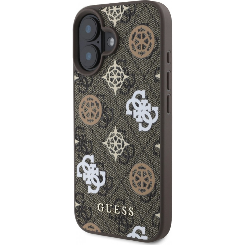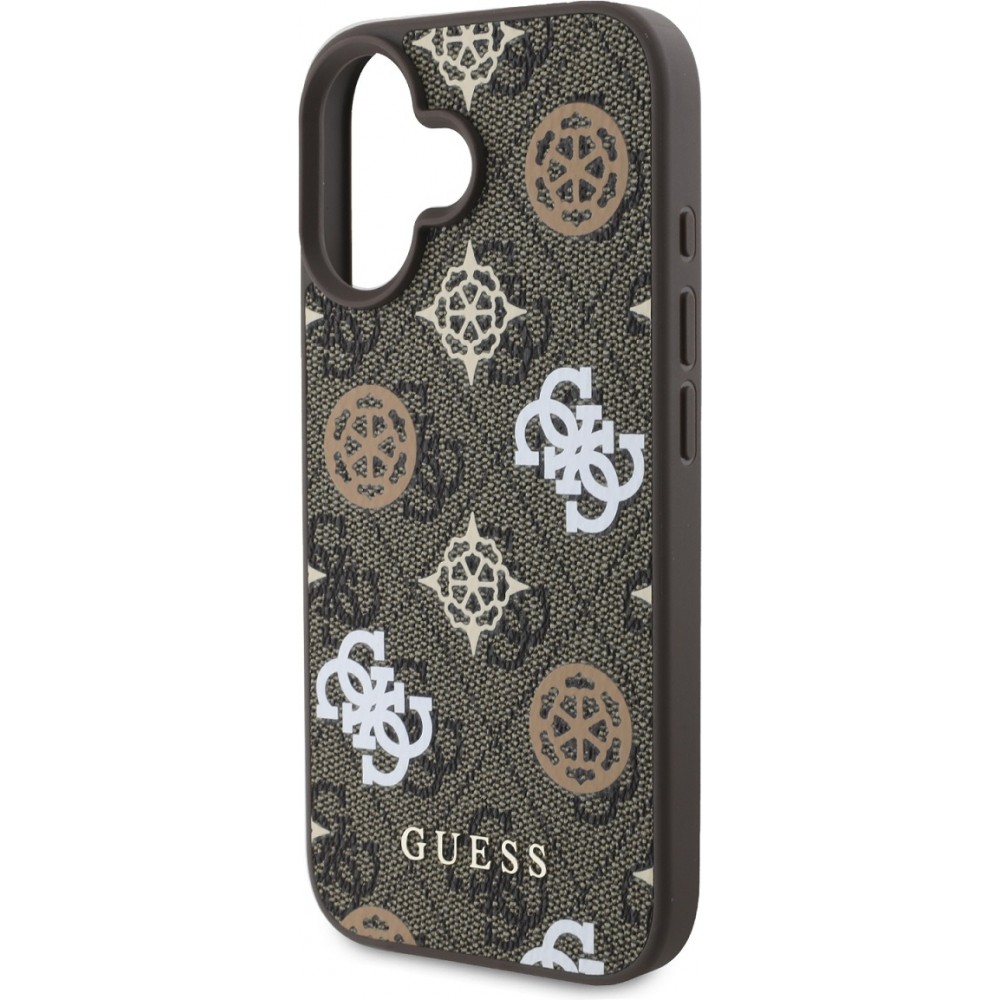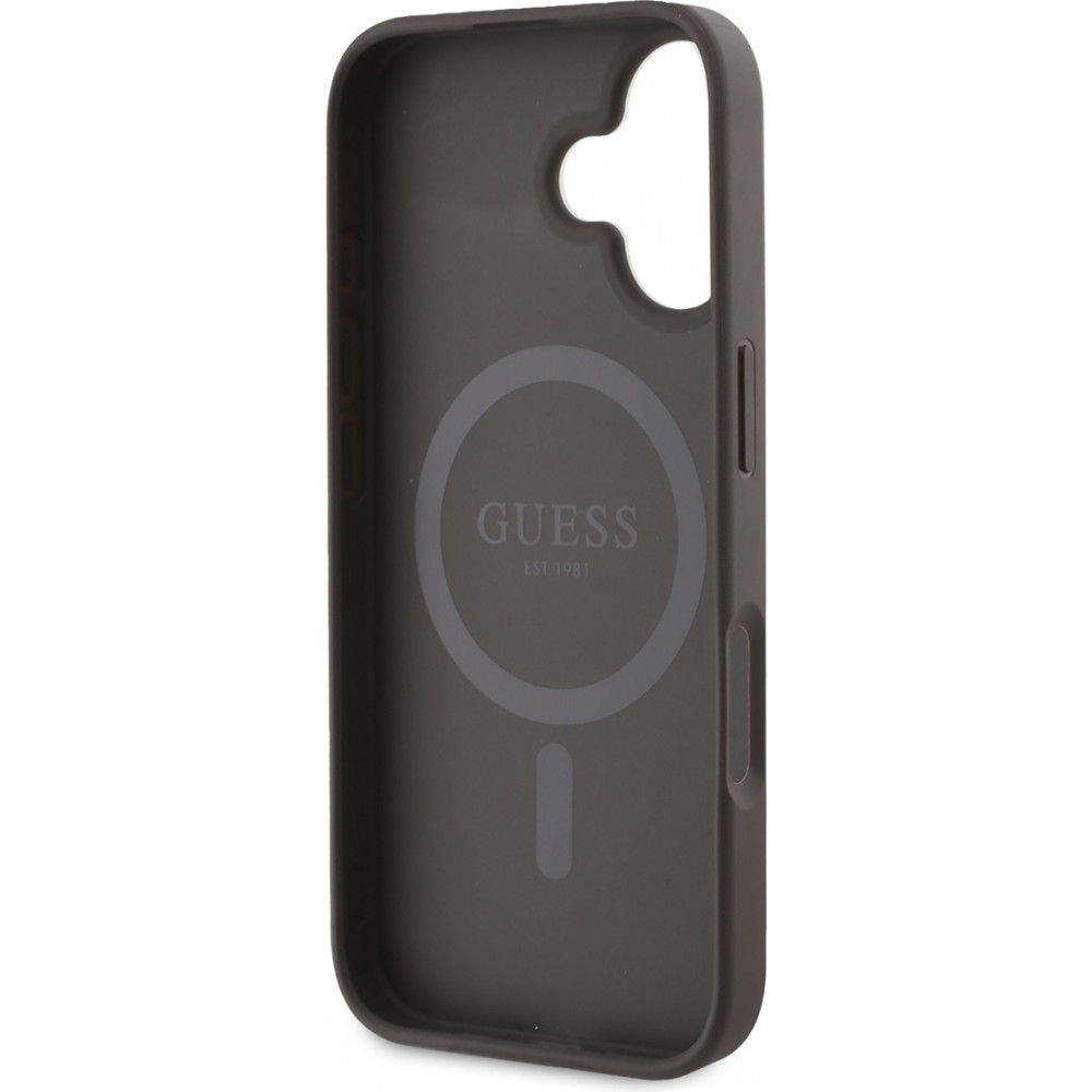 Coque iPhone 16 - Guess monogramme Peony avec MagSafe - Brun