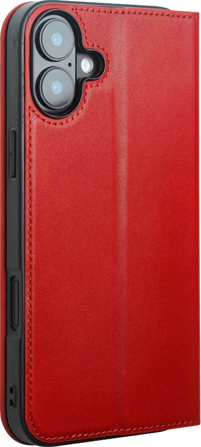 Fourre iPhone 16 - Flip Qialino Matt Wallet cuir véritable - Rouge