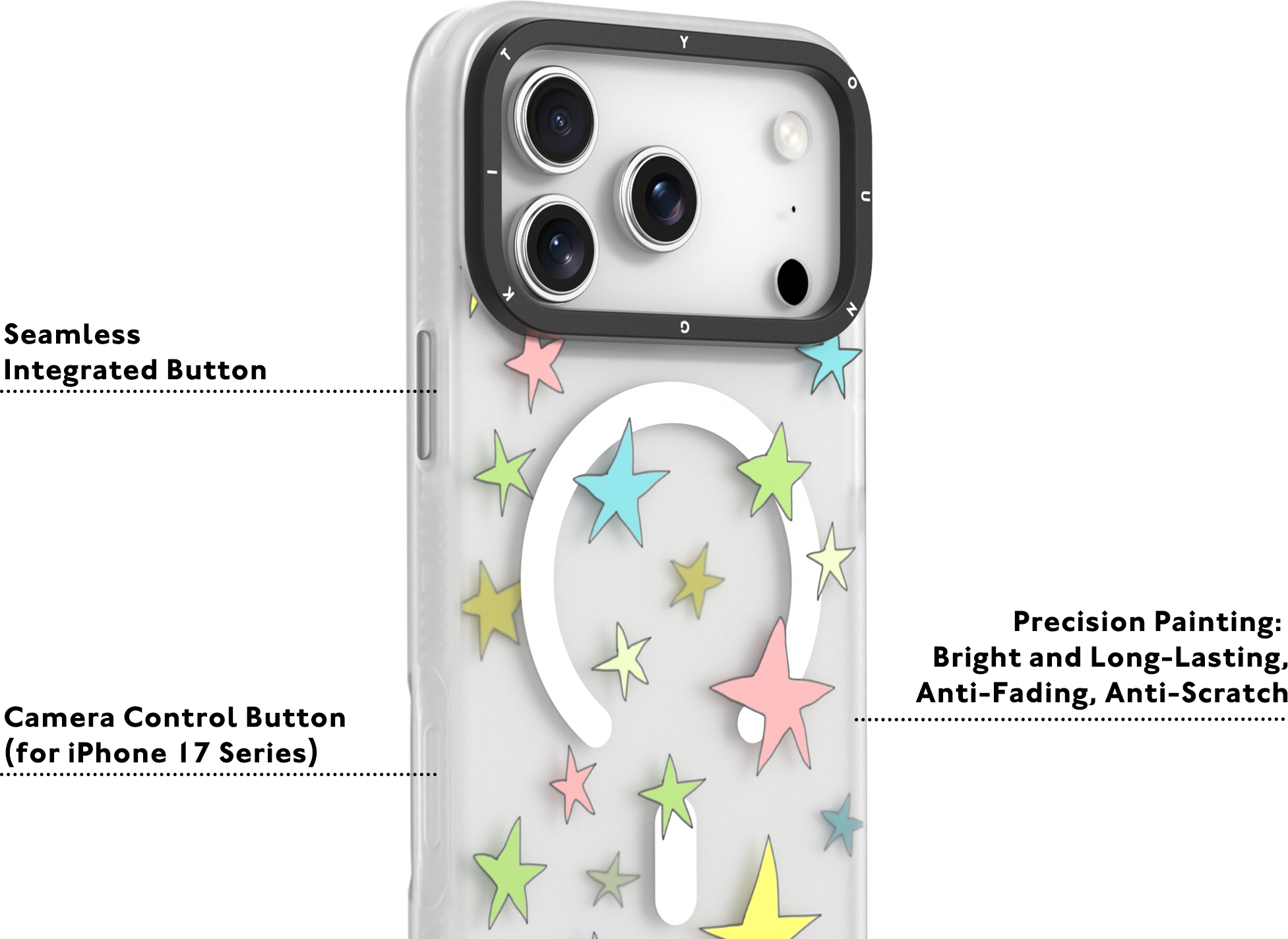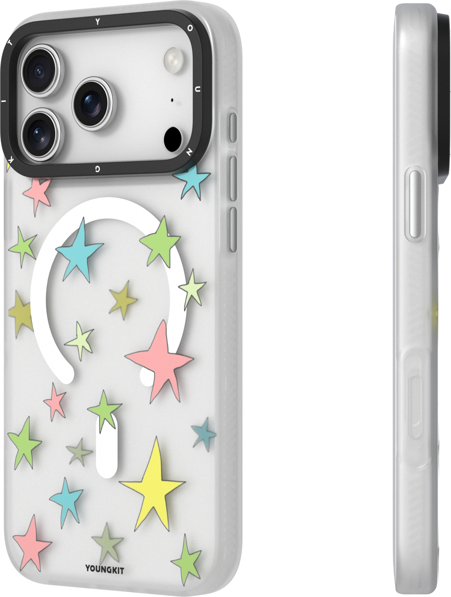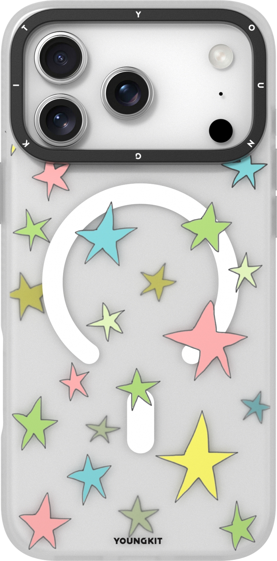 Découvrez la coque Youngkit Sweetheart Story, spécialement conçue pour le nouvel iPhone 17 Pro Max. Avec son design semi-transparent et son motif étoilé, cette coque allie protection et style. Compatible avec MagSafe, elle vous permet de charger votre téléphone sans enlever la coque tout en ajoutant une touche amusante et joyeuse à votre appareil. Offrez à votre iPhone un look unique tout en le protégeant des chocs et des rayures grâce à cette coque élégante de la marque YOUNGKIT.