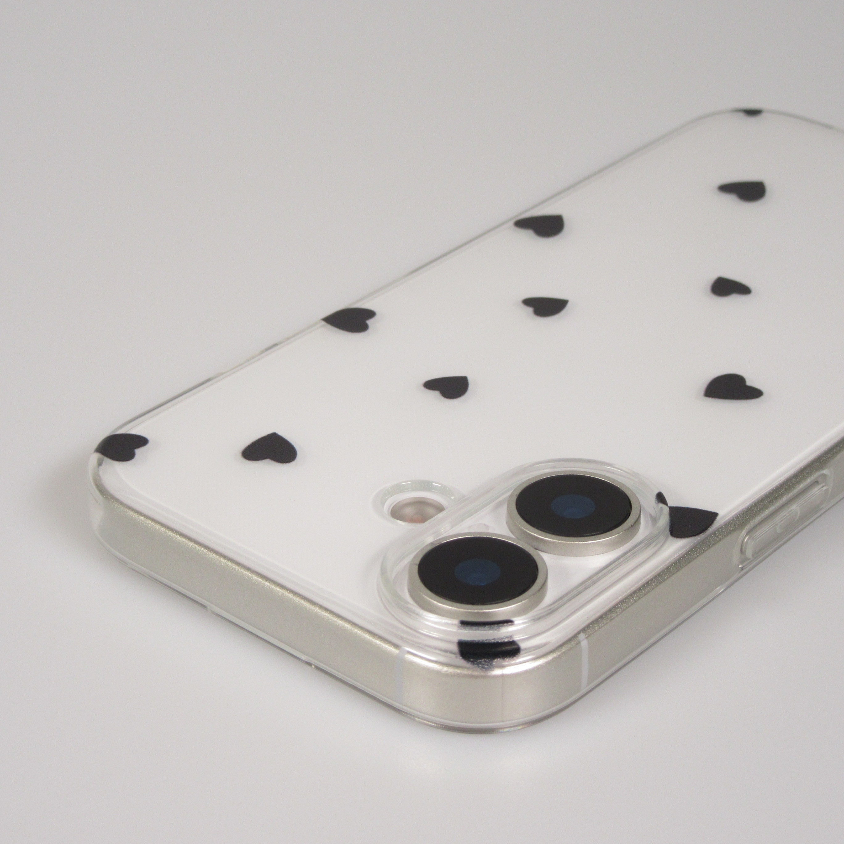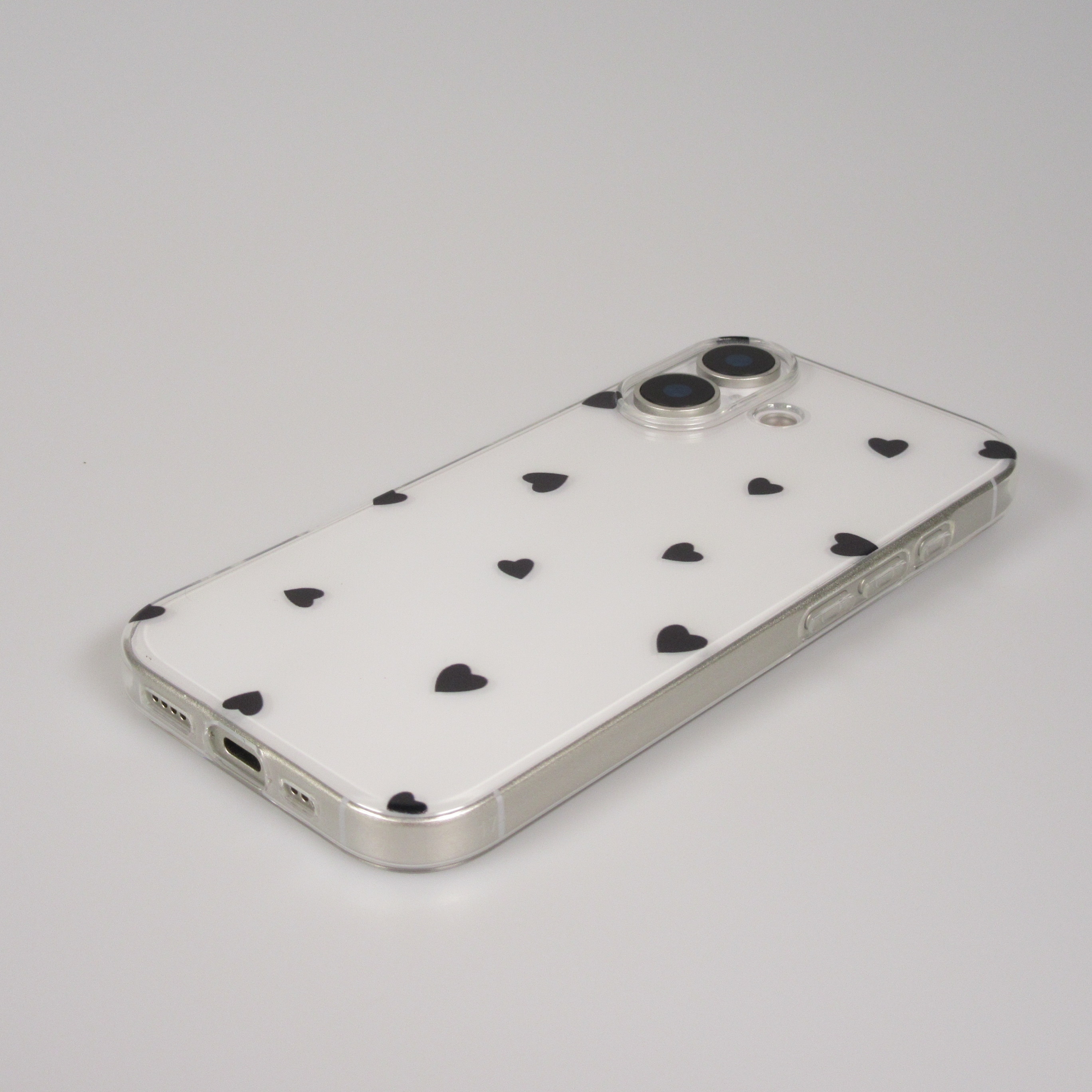 Coque très populaire en gel transparent avec des petits cœurs. Elle protège discrètement le smartphone contre les rayures et les chutes et lui donne une touche de charme.