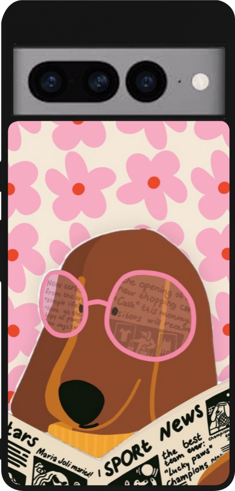 Coque Google Pixel 7 Pro - Silicone rigide noir Dog with newspaper Spring 2026