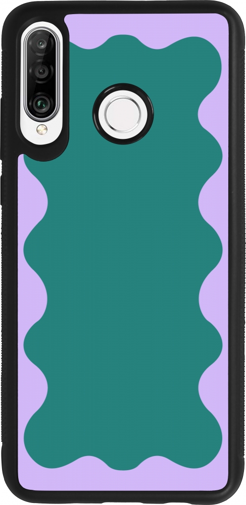Coque Huawei P30 Lite - Silicone rigide noir Wavy Rectangle Green Purple
