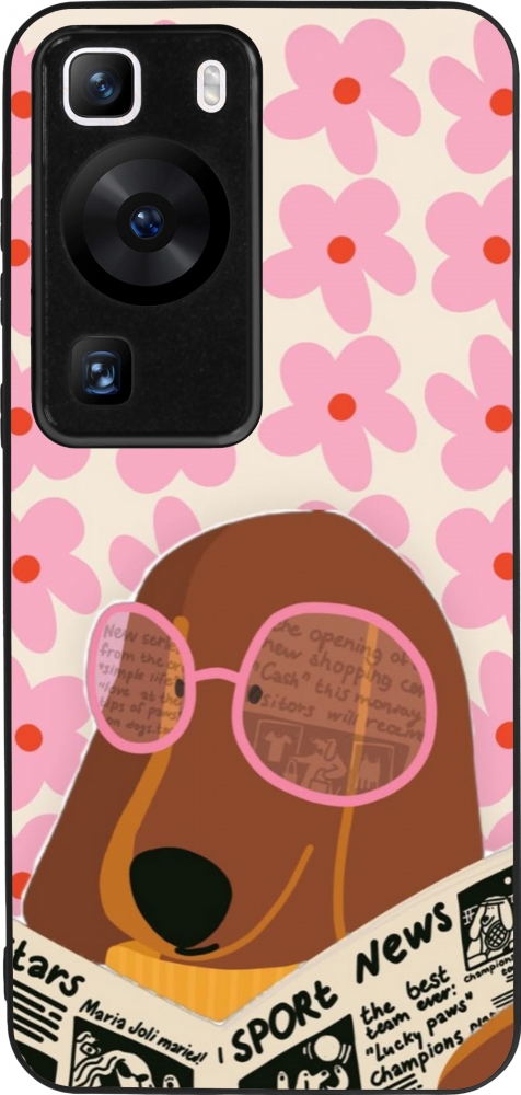 Coque Huawei P60 - Silicone rigide noir Dog with newspaper Spring 2026