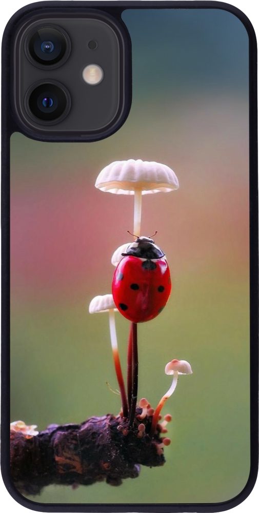 Coque iPhone 12 mini - Silicone rigide noir Ladybird on a mushroom Spring 2026