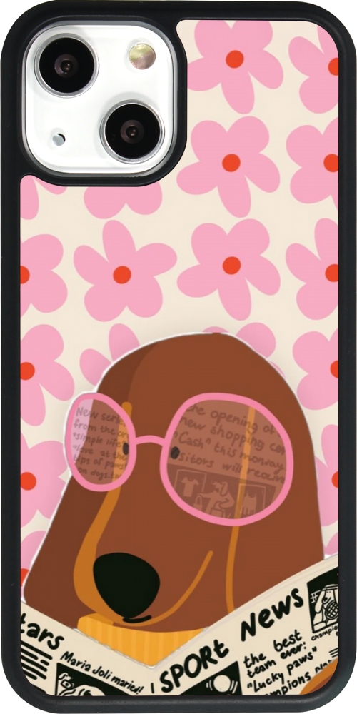 Coque iPhone 13 mini - Silicone rigide noir Dog with newspaper Spring 2026