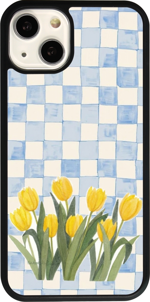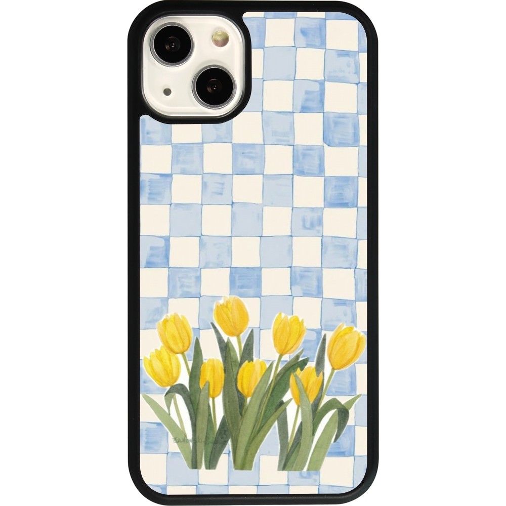 Coque iPhone 13 - Silicone rigide noir Blue vichy tulips Spring 2026