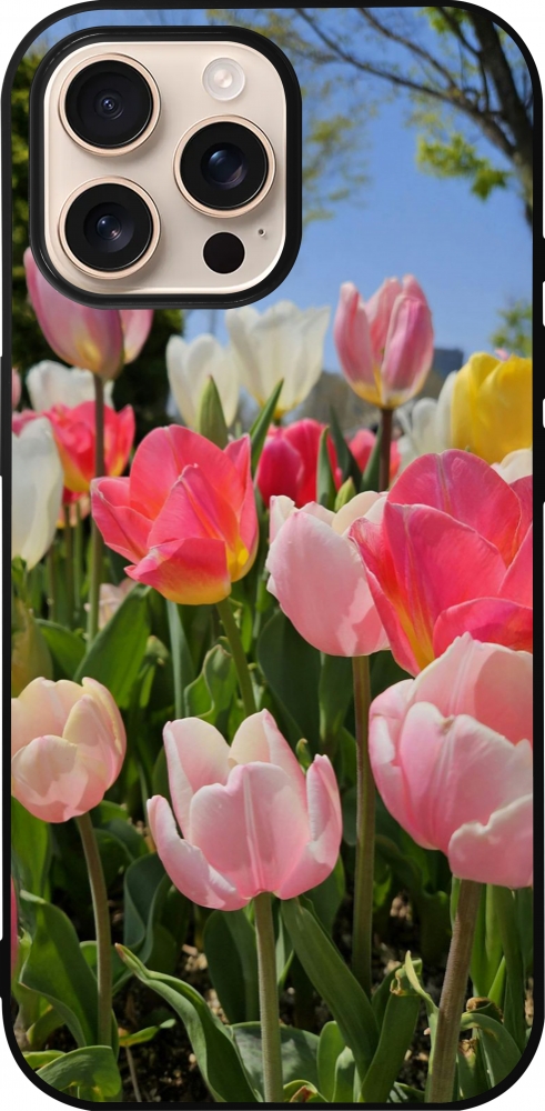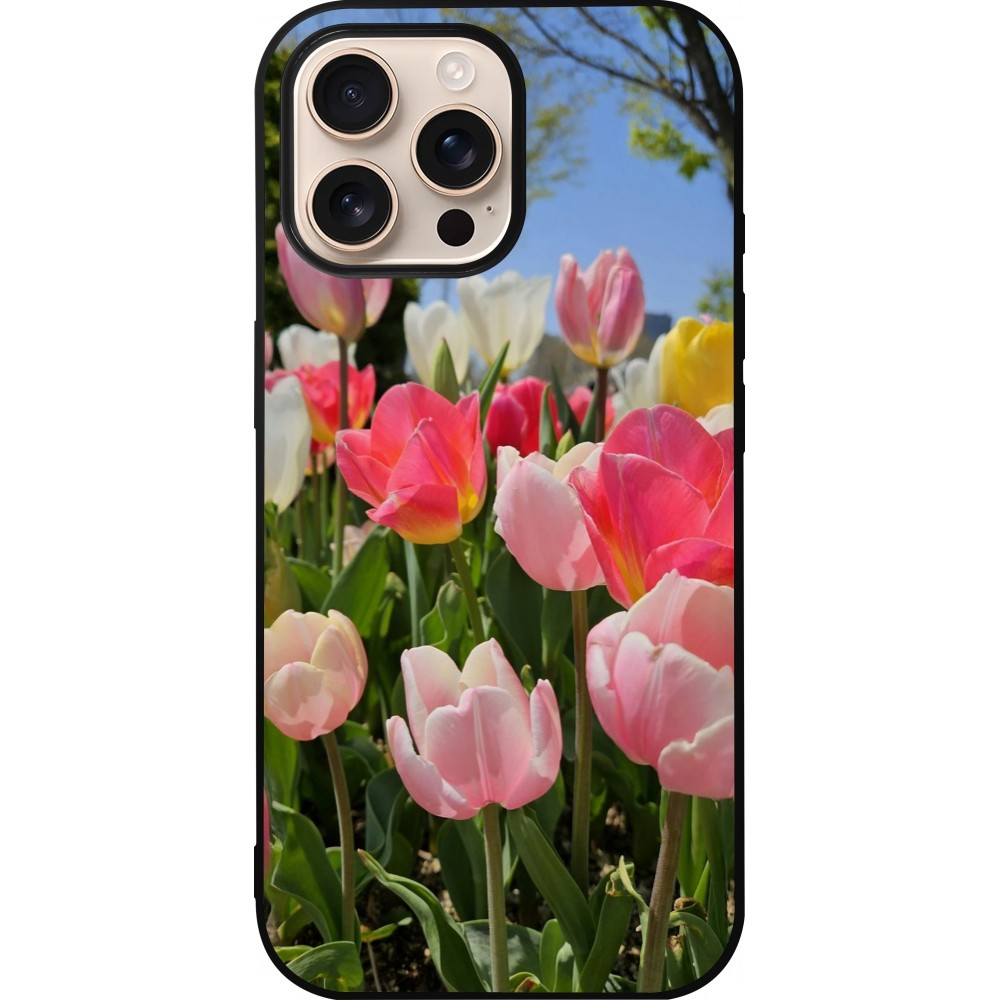 Coque iPhone 16 Pro Max - Silicone rigide noir Tulips Spring 2026