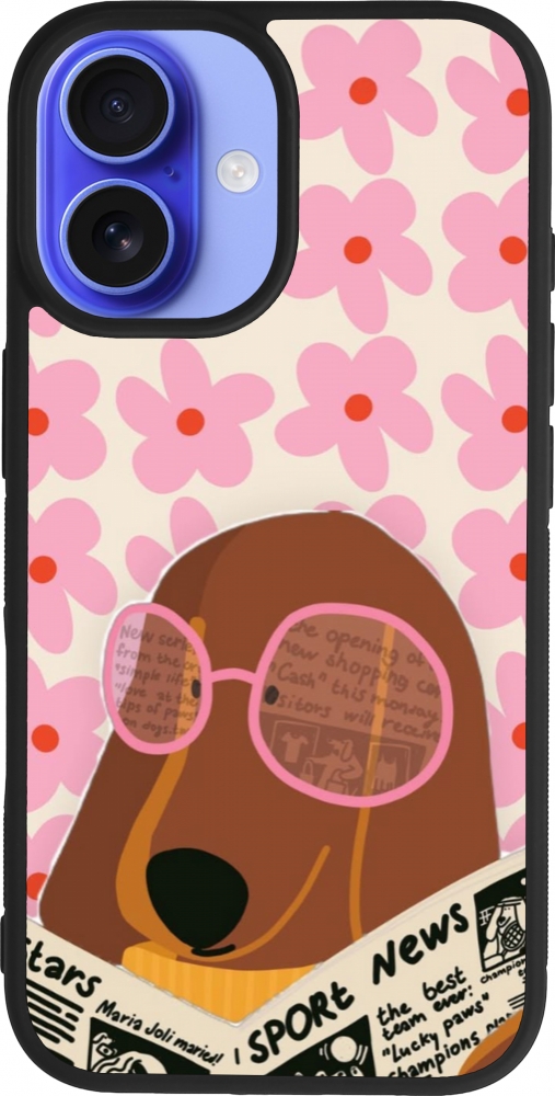 Coque iPhone 16 - Silicone rigide noir Dog with newspaper Spring 2026