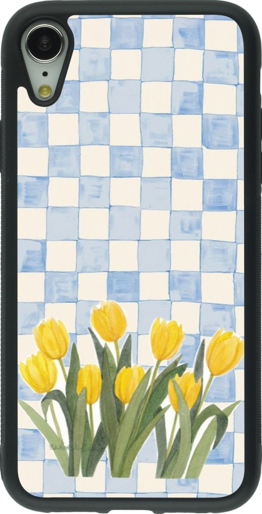 Coque iPhone XR - Silicone rigide noir Blue vichy tulips Spring 2026