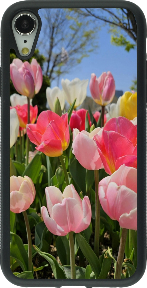 Coque iPhone XR - Silicone rigide noir Tulips Spring 2026