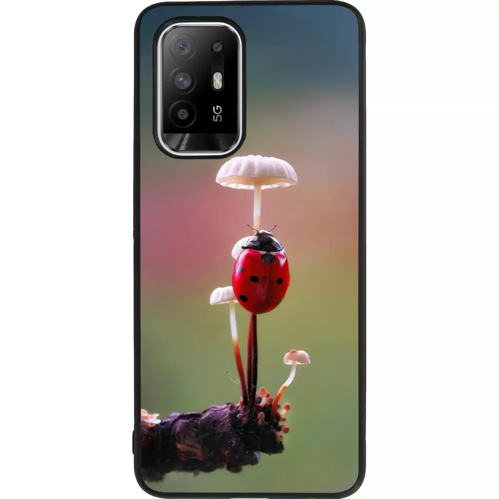Coque OPPO F19 Pro+ - Silicone rigide noir Ladybird on a mushroom Spring 2026