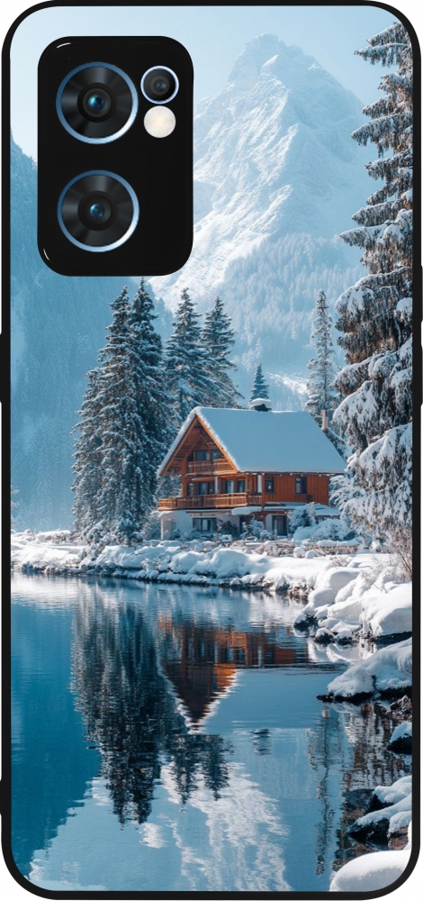 Coque OPPO Reno7 5G - Silicone rigide noir Winter 25 Winter house forest day