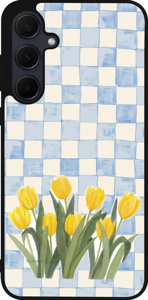 Coque Samsung Galaxy A55 5G - Silicone rigide noir Blue vichy tulips Spring 2026