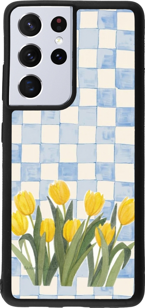 Coque Samsung Galaxy S21 Ultra 5G - Silicone rigide noir Blue vichy tulips Spring 2026